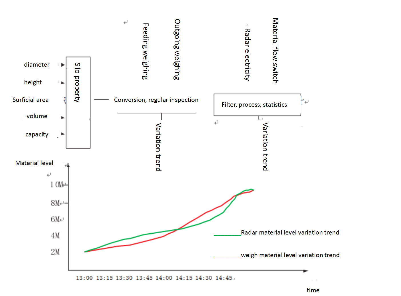 multiple backup material level algorithms assist radar material level data detecting, so as to ensure the continuity and accuracy of material level.