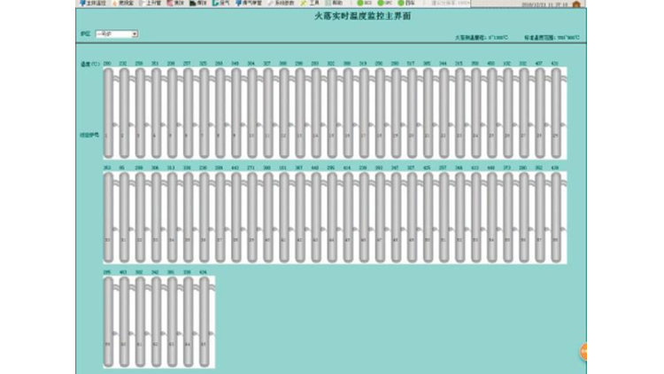 采集直行溫度、荒煤氣溫度、廢氣氧含量、看火孔壓力、加熱煤氣流量和壓力,分煙道吸力等實時數據